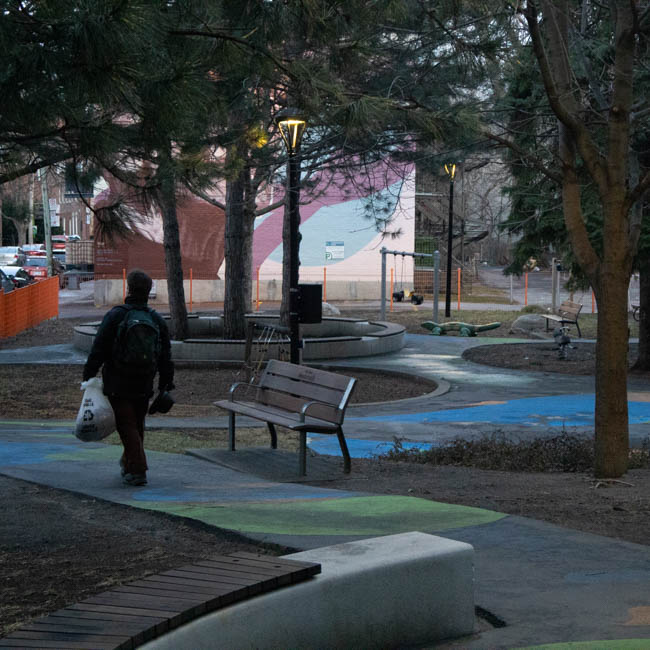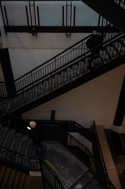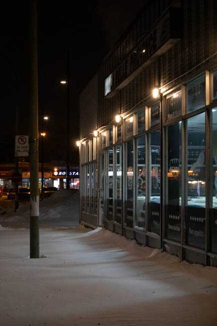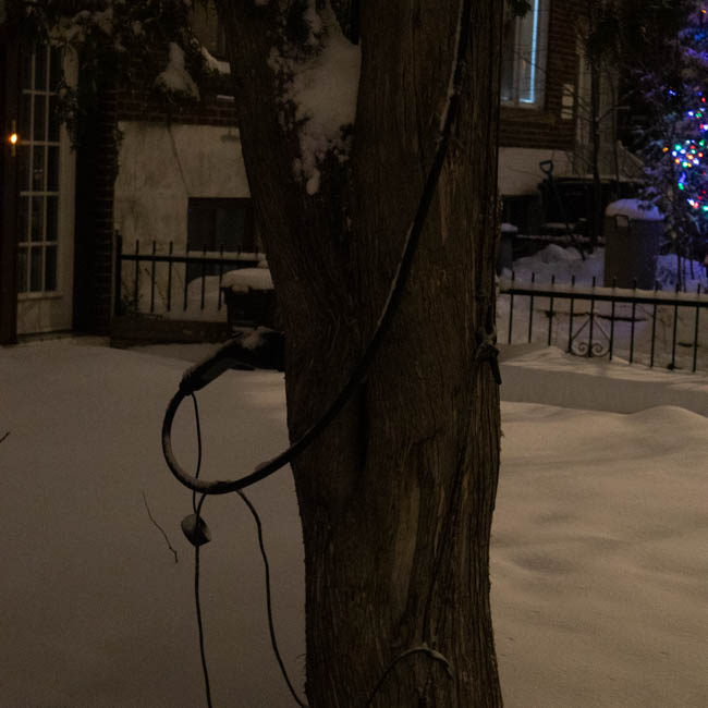 this dark shot with a lit window just bearly showing a staircase. i do love taking darker pictures such as these, and you may see more random lights in dark places. i think it provides in an interesting contrast well having a very simple subjecta simple shot of the eaton sign with some buildings visible. the compression does not do this image any favors, but it's not half badi took this one in a rush, and forgot to put the white balance down :(. it could have been so nice...taken on new year's eve, a shot of one of the buildings around the idea with light strips on them. nothing too notable here, you'll notice a lot of my photography still start being just random things i find. i may call this "experimental", but i only mean that in the context that i am experimenting with trying to take a half decent photo (and not doing a great job.)taken on new year's day, compression unfortunately does this image no favors, but i took a few shots of the crowd. the police luckily provided some interesting lighting, and i thought the big crowd, fog in the distance coupled with the low shudder speed turning some people into a blur. a lot going on here that i enjoy, which combines to make an interesting piece, which is really all i can aim for with photography.taken on the part of campus between maine and n. i always find the cemetarys there to be a nice interesting view, and it is interesting that they are visible from all classes. this one is edited in lightroom to provide it a blue tint, which would otherwise make it uninteresting. it adds to the cold feeling of the graves and is a technique i used for a lot of the winter.this one is pretty random, just the snow covering the window of the du college metro. this one could have benefited from a better angle, as i think the random house's windows distract from the composition of the image and distracts you from the metro sign or bus stop.another light blue tint, although here the blur makes the snow look like rain so it loses a lot. i do not know what my facination with streetlamps is, but i always tend to take a lot of photos of them, as i'm sure you've caught onto looking at these.this one i'm pertecularly proud of, as you might be able to tell. it is my banner for web2 and i will likely use it more in the following years as it is 1920 x 1280 and i will not allow it to burn a 5mb hole in my server for nothing. it's one of my favorite images, even for being so simple. i did use the same blue tint that i mentioned earlier, which i believe adds a lot to the atmosphere of the image.i'm starting to think compression was a terrible idea. taken on the same day of the blue light this was another "experiment", which is code for bad. truthfully i don't know why i included this one, it's very loud a populated. in a perfect world there would be less branches everywhere, but in a perfect world this image would not exist to begin with.this shot of the church in the snow, i think i was just getting some of the pictures of the area out of the way. after taking good pictures of the surrounding buildings i simply stopped taking any of them because i had felt i wouldn't take a better one (at least until the seasons changed)i really like this picture. I wish i had found a more interesting way to use the stoplight, but it was taken while i was waiting for it to change. I think the blue tint against the orange light really helps it contrast from the rest of the image, plus the fresh show and falling snow add help to the atmosphere of the photo.I walk past this tree often on my way home from school, i always found the way this neighbor places his charger to be amusing, as if he is almost charging the tree. unfortunately i think the building and lights in the background distract from what should be a simple subject, paired with the dark environment taken after sunset. unfortunately, with the angle that they place their charrter, it is harder to get a better anglethis