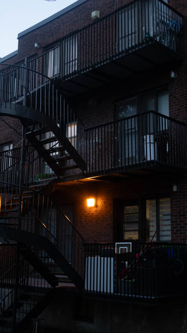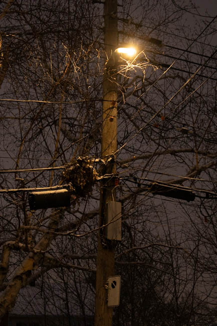 this dark shot with a lit window just bearly showing a staircase. i do love taking darker pictures such as these, and you may see more random lights in dark places. i think it provides in an interesting contrast well having a very simple subjecta simple shot of the eaton sign with some buildings visible. the compression does not do this image any favors, but it's not half badi took this one in a rush, and forgot to put the white balance down :(. it could have been so nice...taken on new year's eve, a shot of one of the buildings around the idea with light strips on them. nothing too notable here, you'll notice a lot of my photography still start being just random things i find. i may call this "experimental", but i only mean that in the context that i am experimenting with trying to take a half decent photo (and not doing a great job.)taken on new year's day, compression unfortunately does this image no favors, but i took a few shots of the crowd. the police luckily provided some interesting lighting, and i thought the big crowd, fog in the distance coupled with the low shudder speed turning some people into a blur. a lot going on here that i enjoy, which combines to make an interesting piece, which is really all i can aim for with photography.taken on the part of campus between maine and n. i always find the cemetarys there to be a nice interesting view, and it is interesting that they are visible from all classes. this one is edited in lightroom to provide it a blue tint, which would otherwise make it uninteresting. it adds to the cold feeling of the graves and is a technique i used for a lot of the winter.this one is pretty random, just the snow covering the window of the du college metro. this one could have benefited from a better angle, as i think the random house's windows distract from the composition of the image and distracts you from the metro sign or bus stop.another light blue tint, although here the blur makes the snow look like rain so it loses a lot. i do not know what my facination with streetlamps is, but i always tend to take a lot of photos of them, as i'm sure you've caught onto looking at these.this one i'm pertecularly proud of, as you might be able to tell. it is my banner for web2 and i will likely use it more in the following years as it is 1920 x 1280 and i will not allow it to burn a 5mb hole in my server for nothing. it's one of my favorite images, even for being so simple. i did use the same blue tint that i mentioned earlier, which i believe adds a lot to the atmosphere of the image.i'm starting to think compression was a terrible idea. taken on the same day of the blue light this was another "experiment", which is code for bad. truthfully i don't know why i included this one, it's very loud a populated. in a perfect world there would be less branches everywhere, but in a perfect world this image would not exist to begin with.this shot of the church in the snow, i think i was just getting some of the pictures of the area out of the way. after taking good pictures of the surrounding buildings i simply stopped taking any of them because i had felt i wouldn't take a better one (at least until the seasons changed)i really like this picture. I wish i had found a more interesting way to use the stoplight, but it was taken while i was waiting for it to change. I think the blue tint against the orange light really helps it contrast from the rest of the image, plus the fresh show and falling snow add help to the atmosphere of the photo.I walk past this tree often on my way home from school, i always found the way this neighbor places his charger to be amusing, as if he is almost charging the tree. unfortunately i think the building and lights in the background distract from what should be a simple subject, paired with the dark environment taken after sunset. unfortunately, with the angle that they place their charrter, it is harder to get a better anglethis
